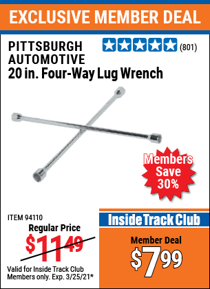 ITC PITTSBURGH 20 IN. FOUR-WAY LUG WRENCH Lot No. 94110 Expired: 3/25/21 - $7.99 Coupon Code: 'n/a'