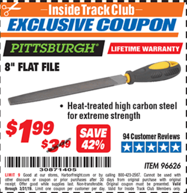 PITTSBURGH 8 IN. FLAT FILE Lot No. 96626 Expired: 3/31/20 - $2.49 Coupon Code: '58470672'