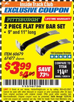 ITC PITTSBURGH FLAT PRY BAR SET, 2 PIECE Lot No. 67477 Expired: 6/30/15 - $2.99 Coupon Code: '89664584'