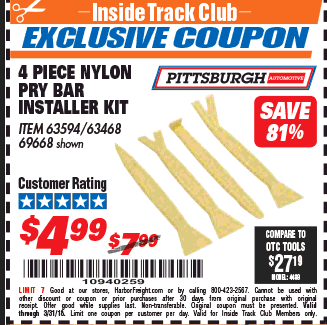 ITC PITTSBURGH NYLON PRY BAR INSTALLER KIT, 4-PIECE Lot No. 63594 Expired: 11/30/15 - $4.99 Coupon Code: '85096815'