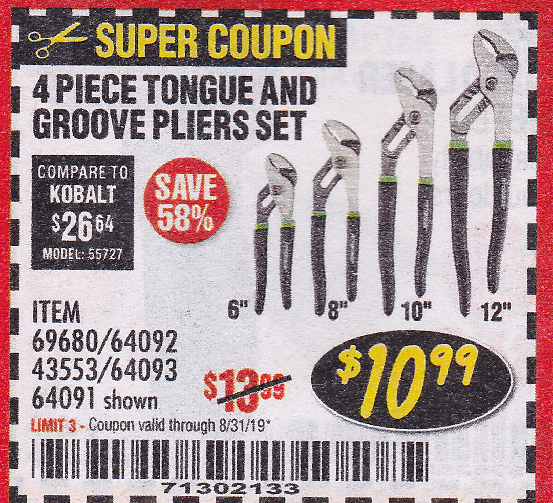 PITTSBURGH TONGUE AND GROOVE JOINT PLIERS SET, 4-PIECE Lot No. 64093 Expired: 8/31/19 - $10.99 Coupon Code: '71302133'