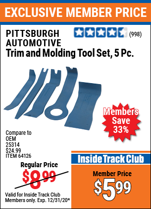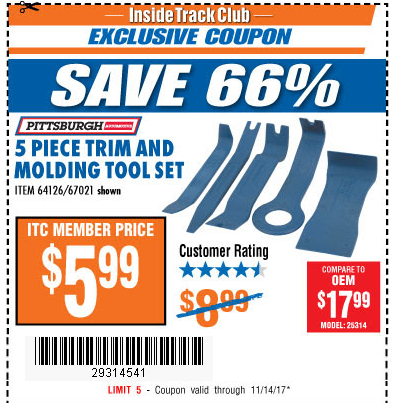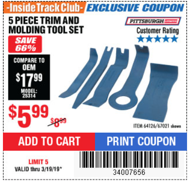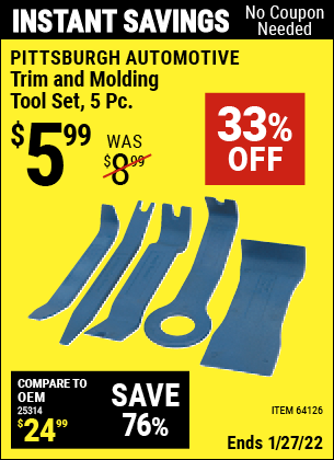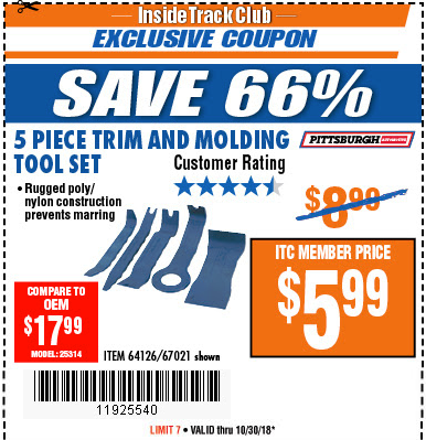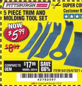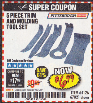 PITTSBURGH TRIM AND MOLDING TOOL SET, 5-PIECE Lot No. 64126 Expired: 2/5/19 - $5.99 Coupon Code: '71819022'