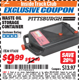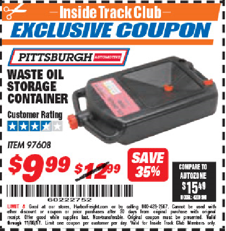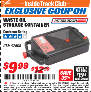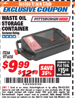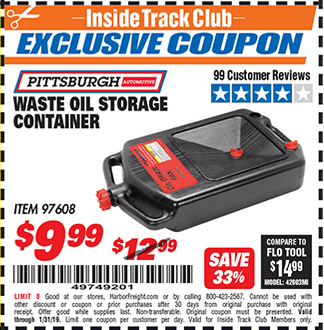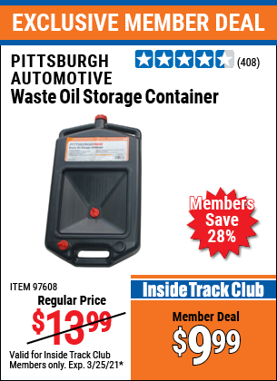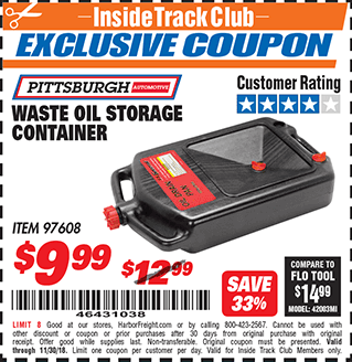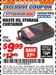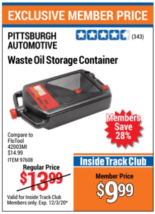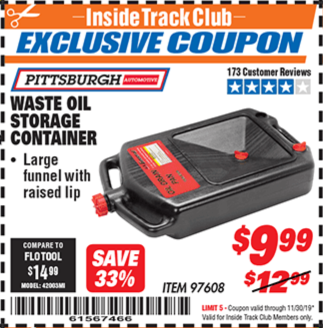 PITTSBURGH WASTE OIL STORAGE CONTAINER Lot No. 97608 Valid Thru: 11/9/25 - $12.99 Coupon Code: '46301742' (current price - 15% = 0) add to list