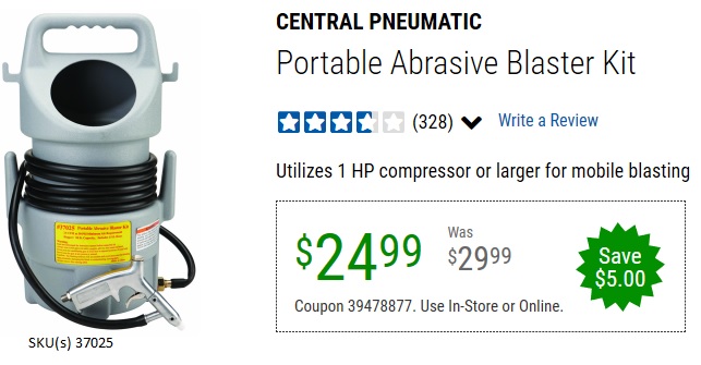 PORTABLE ABRASIVE BLASTER KIT Lot No. 37025 Expired: 6/30/20 - $24.99 Coupon Code: '39478877'
