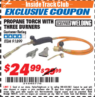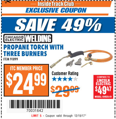 ITC CHICAGO ELECTRIC PROPANE TORCH WITH THREE BURNERS Lot No. 91899 Expired: 12/19/17 - $24.99 Coupon Code: '70031642'