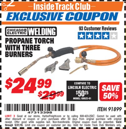 ITC CHICAGO ELECTRIC PROPANE TORCH WITH THREE BURNERS Lot No. 91899 Expired: 2/29/20 - $24.99 Coupon Code: '54999168'