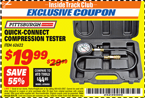 QUICK CONNECT COMPRESSION TESTER Lot No. 62622/95187 Expired: 7/22/21 - $29.99 Coupon Code: 'n/a'