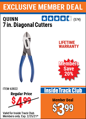 ITC QUINN 7IN. DIAGONAL CUTTERS Lot No. 63822 Expired: 2/25/21 - $3.99 Coupon Code: 'n/a'