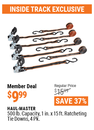 RATCHETING TIE DOWNS Lot No. 56397 Expired: 5/12/19 - $9.99 Coupon Code: '20661863'