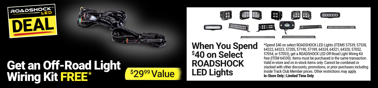 ROADSHOCK OFF-ROAD LIGHT WIRING KIT Lot No. 64330 Expired: 9/1/25 - $24.99 Coupon Code: '74983993'