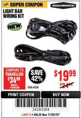 ROADSHOCK OFF-ROAD LIGHT WIRING KIT Lot No. 64330 Expired: 11/25/18 - $19.99 Coupon Code: '24293264'