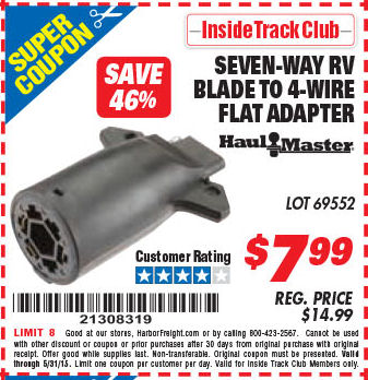 ITC SEVEN-WAY RV BLADE TO 4-WIRE FLAT ADAPTER Lot No. 69552 Expired: 5/31/15 - $7.99 Coupon Code: '21308319'