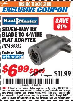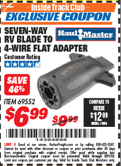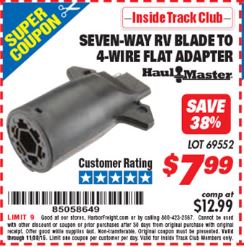 ITC SEVEN-WAY RV BLADE TO 4-WIRE FLAT ADAPTER Lot No. 69552 Expired: 8/31/17 - $6.99 Coupon Code: '60314256'