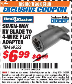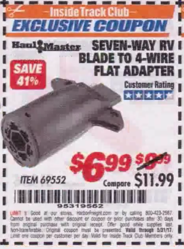 ITC SEVEN-WAY RV BLADE TO 4-WIRE FLAT ADAPTER Lot No. 69552 Expired: 5/31/17 - $6.99 Coupon Code: '95319562'