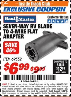 ITC SEVEN-WAY RV BLADE TO 4-WIRE FLAT ADAPTER Lot No. 69552 Expired: 9/30/15 - $7.99 Coupon Code: '46489038'