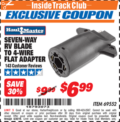 ITC SEVEN-WAY RV BLADE TO 4-WIRE FLAT ADAPTER Lot No. 69552 Expired: 4/30/19 - $6.99 Coupon Code: '18793073'