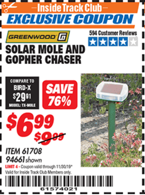 ITC SOLAR MOLE CHASER Lot No. 61708/94661 Expired: 11/30/19 - $6.99 Coupon Code: '61574021'