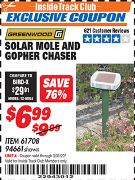 ITC SOLAR MOLE CHASER Lot No. 61708/94661 Expired: 3/31/20 - $6.99 Coupon Code: '22943012'