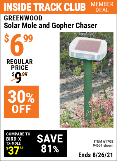 ITC SOLAR MOLE CHASER Lot No. 61708/94661 Expired: 8/26/21 - $6.99 Coupon Code: 'n/a'