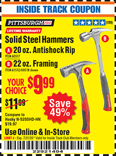ITC SOLID STEEL HAMMERS Lot No. 60517 Expired: 7/31/20 - $9.99 Coupon Code: '9190467'