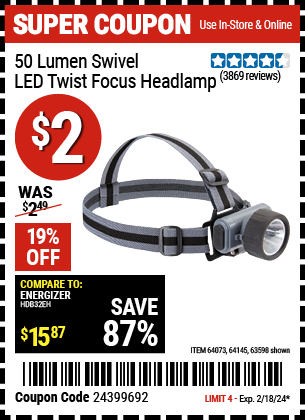 SWIVEL LENS HEADLAMP Lot No. 63598/61319/64073/64145 Expired: 2/18/24 - $2 Coupon Code: '24399692'