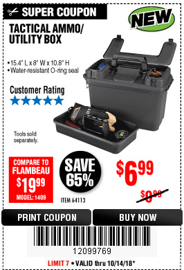 TACTICAL AMMO BOX W/TRAY Lot No. 64113 Expired: 7/1/18 - $6.99 Coupon Code: '16418106'