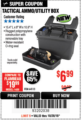 TACTICAL AMMO BOX W/TRAY Lot No. 64113 Expired: 10/28/18 - $6.99 Coupon Code: '93202038'