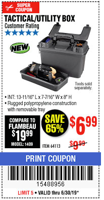 TACTICAL AMMO BOX W/TRAY Lot No. 64113 Expired: 2/28/19 - $6.99 Coupon Code: '42341133'
