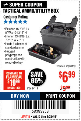 TACTICAL AMMO BOX W/TRAY Lot No. 64113 Expired: 8/25/19 - $6.99 Coupon Code: '58393956'