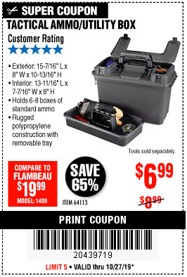 TACTICAL AMMO BOX W/TRAY Lot No. 64113 Expired: 10/27/19 - $6.99 Coupon Code: '20439719'