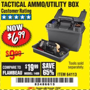 TACTICAL AMMO BOX W/TRAY Lot No. 64113 Expired: 1/3/20 - $6.99 Coupon Code: '82486615'