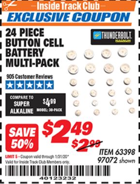 ITC THUNDERBOLT MAGNUM BUTTON CELL BATTERY ASSORTMENT, 24-PIECE Lot No. 63398 Expired: 1/31/20 - $2.49 Coupon Code: '40123232'