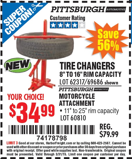 TIRE CHANGERS Lot No. 62317/69686 Expired: 3/31/15 - $34.99 Coupon Code: '74178798'