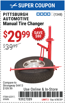 TIRE CHANGERS Lot No. 62317/69686 Expired: 6/30/20 - $29.99 Coupon Code: '39446696'