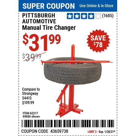 TIRE CHANGERS Lot No. 62317/69686 Expired: 1/28/21 - $31.99 Coupon Code: '43454633'