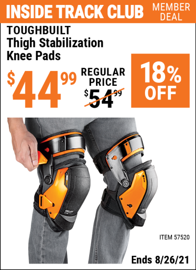 ITC TOUGHBUILT THIGH STABILIZATION KNEE PADS Lot No. 57520 Expired: 8/26/21 - $44.99 Coupon Code: 'n/a'