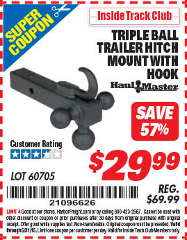 HAUL-MASTER TRIPLE-BALL TRAILER HITCH MOUNT WITH HOOK Lot No. 62701 Expired: 6/30/20 - $34.99 Coupon Code: '21083089'
