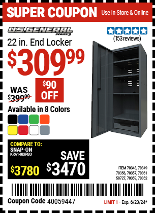 U.S. GENERAL 22 IN. END LOCKER, SERIES 3, RED Lot No. 58727/70348/70349/70352/70356/70357/70359/70361/73361 Expired: 2/18/24 - $299.99 Coupon Code: 'n/a'