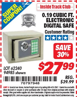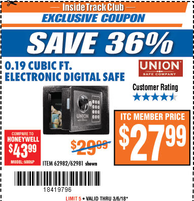 ITC UNION SAFE COMPANY 0.19 CU. FT. ELECTRONIC DIGITAL SAFE Lot No. 62981/62982 Expired: 3/31/15 - $27.99 Coupon Code: '70797948'