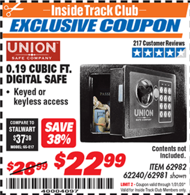 ITC UNION SAFE COMPANY 0.19 CU. FT. ELECTRONIC DIGITAL SAFE Lot No. 62981/62982 Expired: 1/31/20 - $22.99 Coupon Code: '40004097'