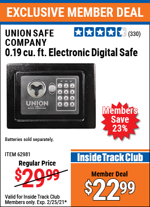 ITC UNION SAFE COMPANY 0.19 CU. FT. ELECTRONIC DIGITAL SAFE Lot No. 62981/62982 Expired: 2/25/21 - $22.99 Coupon Code: 'n/a'