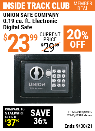 ITC UNION SAFE COMPANY 0.19 CU. FT. ELECTRONIC DIGITAL SAFE Lot No. 62981/62982 Expired: 9/30/21 - $23.99 Coupon Code: 'n/a'