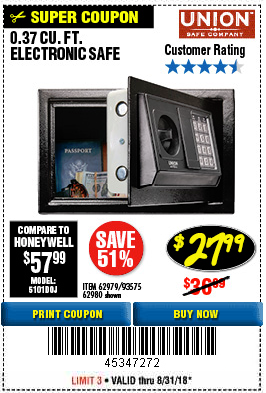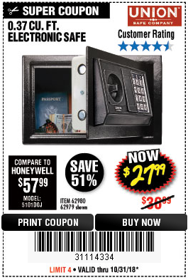 UNION SAFE COMPANY 0.37 CU. FT. ELECTRONIC DIGITAL SAFE Lot No. 62979/62980 Expired: 8/26/18 - $27.99 Coupon Code: '57827673'
