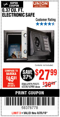 UNION SAFE COMPANY 0.37 CU. FT. ELECTRONIC DIGITAL SAFE Lot No. 62979/62980 Expired: 6/30/19 - $27.99 Coupon Code: '15493770'