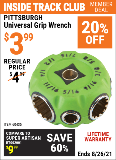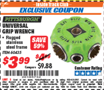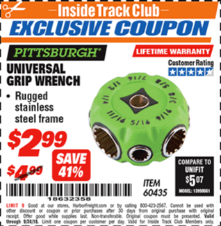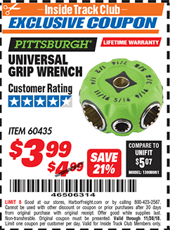 UNIVERSAL GRIP WRENCH Lot No. 60435 Expired: 9/5/15 - $3.99 Coupon Code: '12725821'