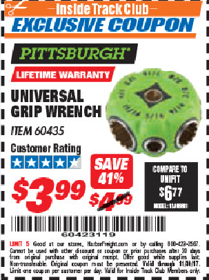 ITC UNIVERSAL GRIP WRENCH Lot No. 60435 Expired: 11/30/17 - $3.99 Coupon Code: '60423119'