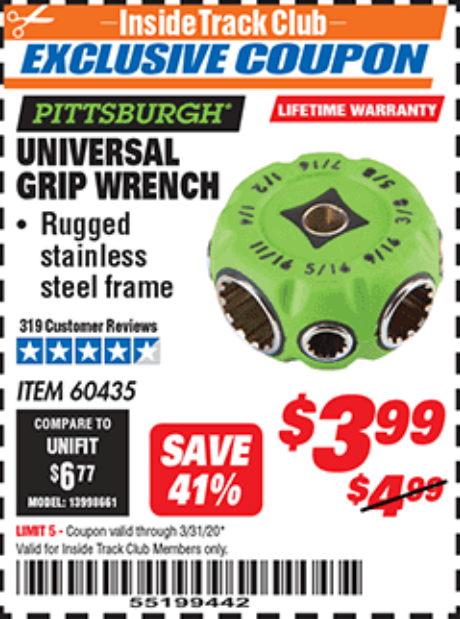 ITC UNIVERSAL GRIP WRENCH Lot No. 60435 Expired: 3/31/20 - $3.99 Coupon Code: '55199442'