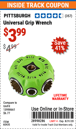 ITC UNIVERSAL GRIP WRENCH Lot No. 60435 Expired: 8/31/20 - $3.99 Coupon Code: '28998286'