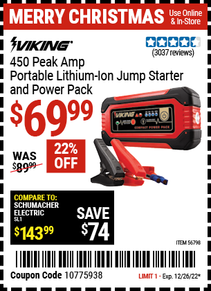 VIKING JUMP STARTER AND POWER PACK Lot No. 62749/64412/56798 Expired: 12/26/22 - $69.99 Coupon Code: '10775938'
