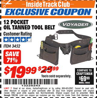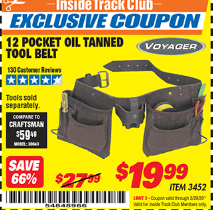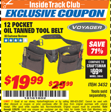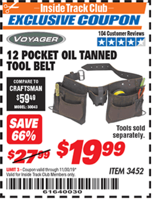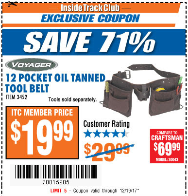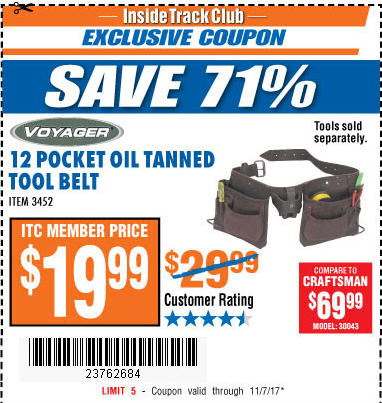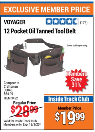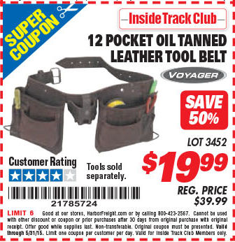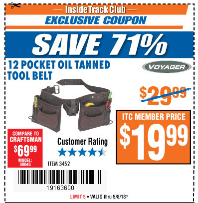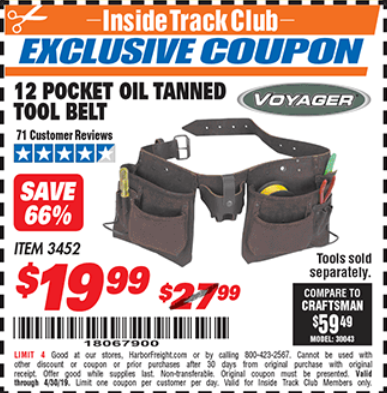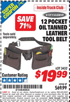 ITC VOYAGER 12-POCKET OIL-TANNED TOOL BELT Lot No. 3452 Expired: 12/19/17 - $19.99 Coupon Code: '70015905'